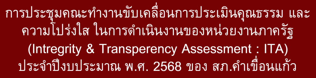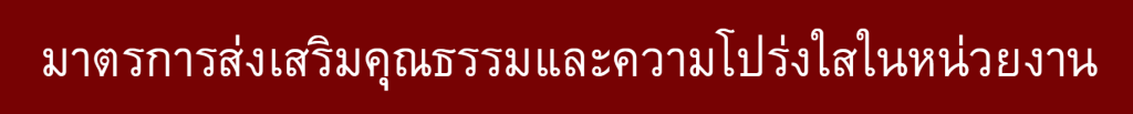Home » มาตรฐาน ITA » มาตรการภายในเพื่อป้องกันการทุจริต » O24 มาตรการยกระดับคุณธรรมและความโปร่งใสภายในหน่วยงาน